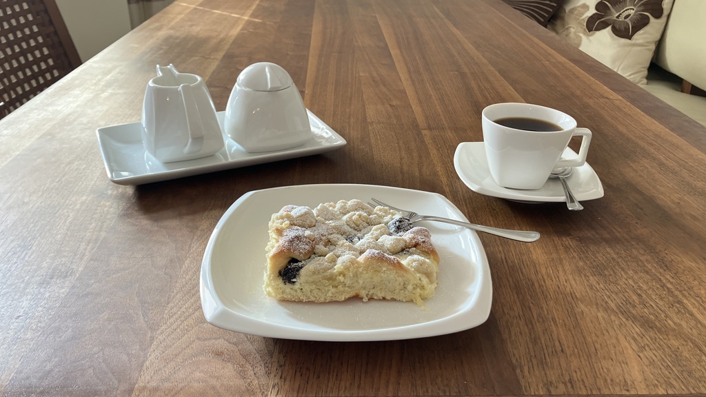 Den Germteig in ca. 20 Stücke teilen und zu runden Fladen ausrollen. Einen Rand formen, mit einer der beiden Füllungen bestreichen und einen Klecks Powidl draufgeben. Die Fladen noch einmal 10 min gehen lassen, mit Streuseln belegen und auf einem gefetteten Backblech im vorgeheizten Ofen bei 180 °C Ober-/Unterhitze ca. 20 – 25 min backen lassen. Nach dem Auskühlen mit Staubzucker bestreuen.